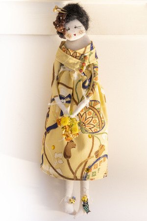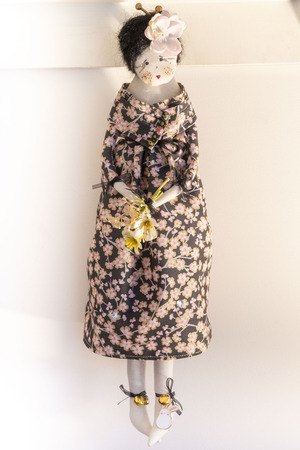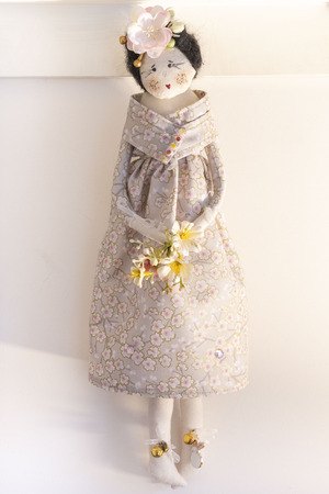 This little collection of Art dolls with demurely turned heads have some very special names and meanings, the fabric is a cherry blossom print and wonderful Kanedai patterns with gold and gold stitching xx
