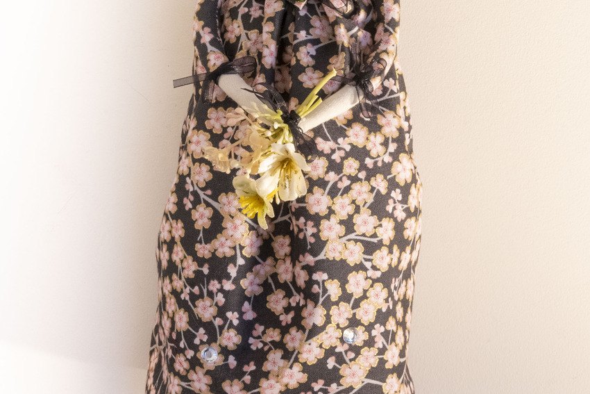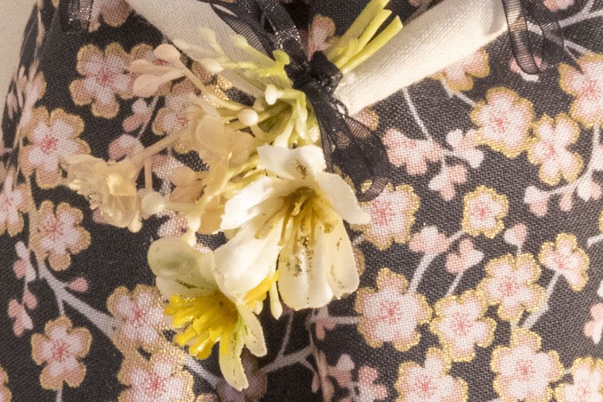 Aimi who's name means beautiful in her beautiful cherry blossom and gold print dress with matching sleeves and wrap, flower posy, special charm and as always not to forget glitter lipstick and eyelashes xx