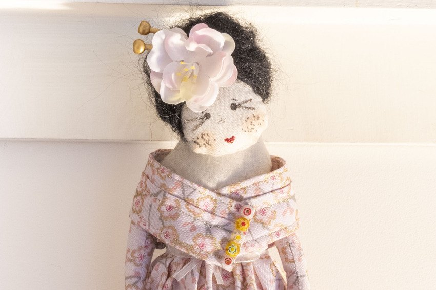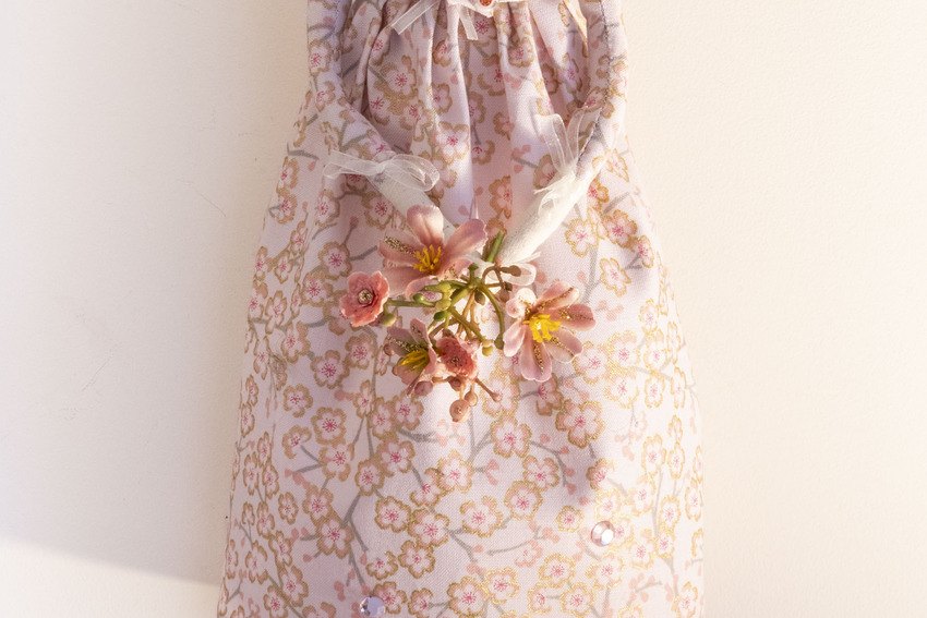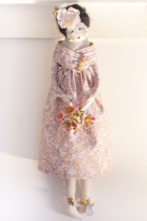 Aki who's name means sparkle and bright, in her beautiful cherry blossom and gold print dress with matching sleeves and wrap, flower posy, special charm and as always not to forget glitter lipstick and eyelashes xx