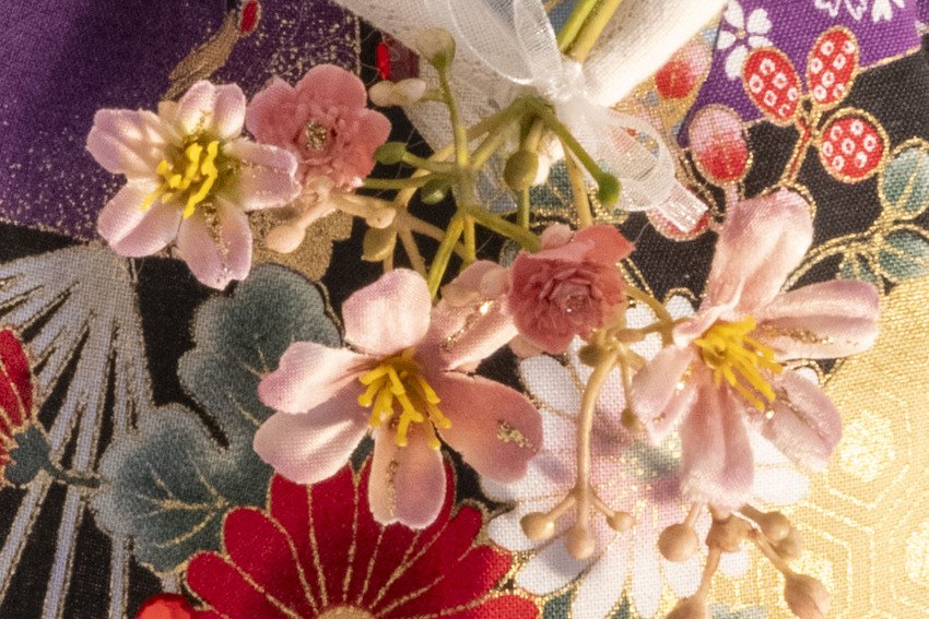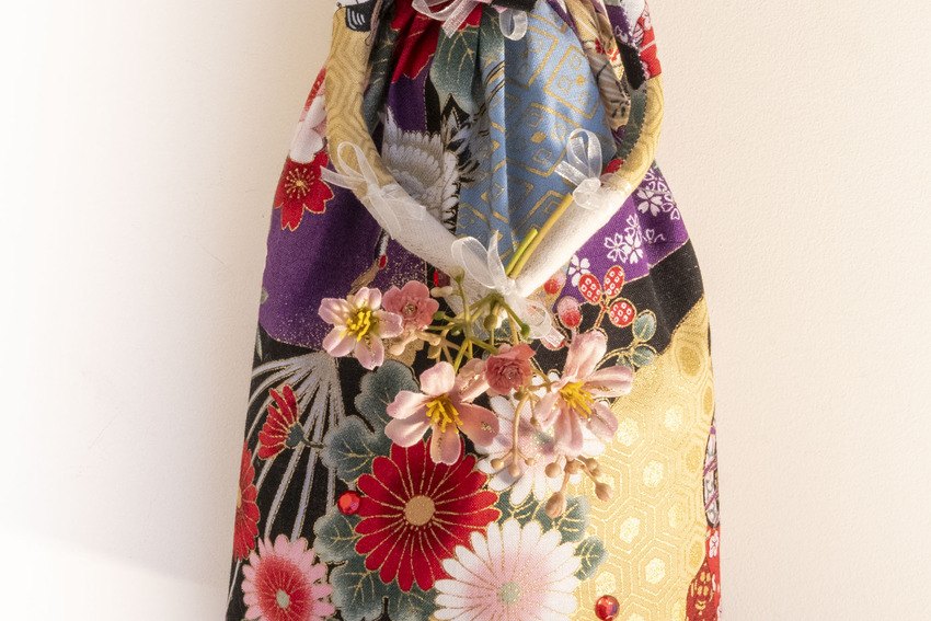 Aya who's name means colourful in her beautiful Kanedai print dress with gold, matching sleeves and wrap, flower posy, special charm and as always not to forget glitter lipstick and eyelashes xx