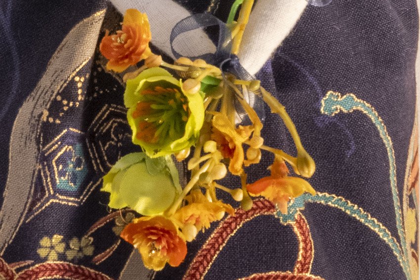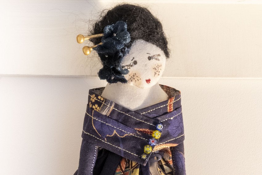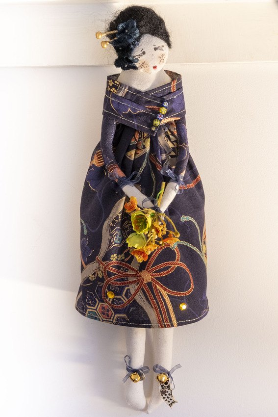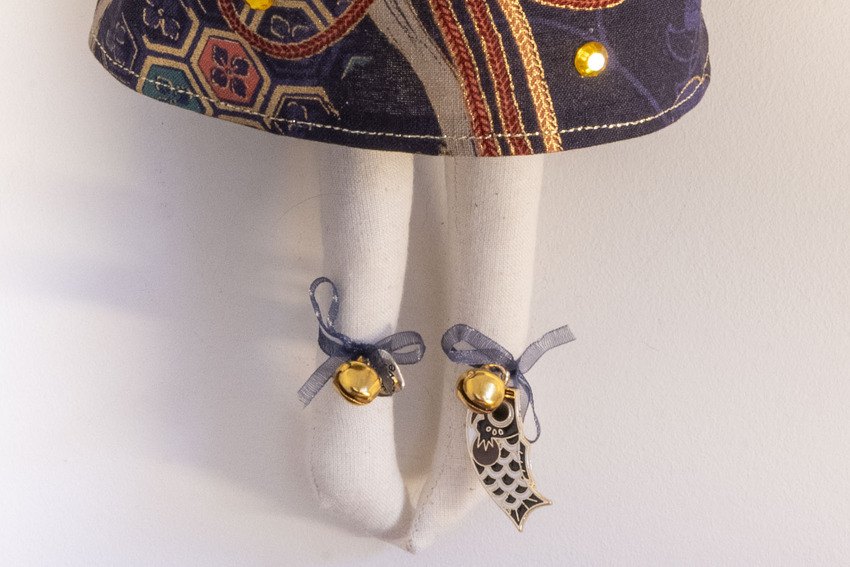 Hoshiko who's name means star in her beautiful Kanedai print dress with gold, matching sleeves and wrap, flower posy, special charm and as always not to forget glitter lipstick and eyelashes xx