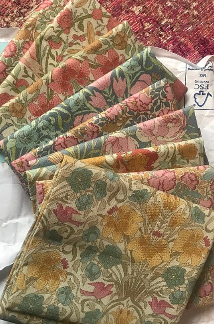 Gorgeous hellebore flowers and some colourful floral fabrics.