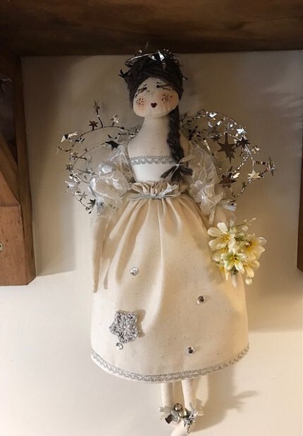 I wanted to share with you a story today regarding a very special wedding dress, I was contacted by a lovely customer Ann who wanted me to repurpose her wedding dress into a wedding fairy doll for a wonderful memory and 2 Christmas fairies. I asked if she would be able to send it down to me as I need to see the fabric to check if it would work( no one ever wants to cut into their wedding dress ) so it was not long before a beautiful box arrived with dress and embellishments, a butterfly from a shoe, a veil and lots of satin and lace. I always open it and I leave it for a day or two while I work out which parts I can use, I also had a photo of Ann on her special day xx