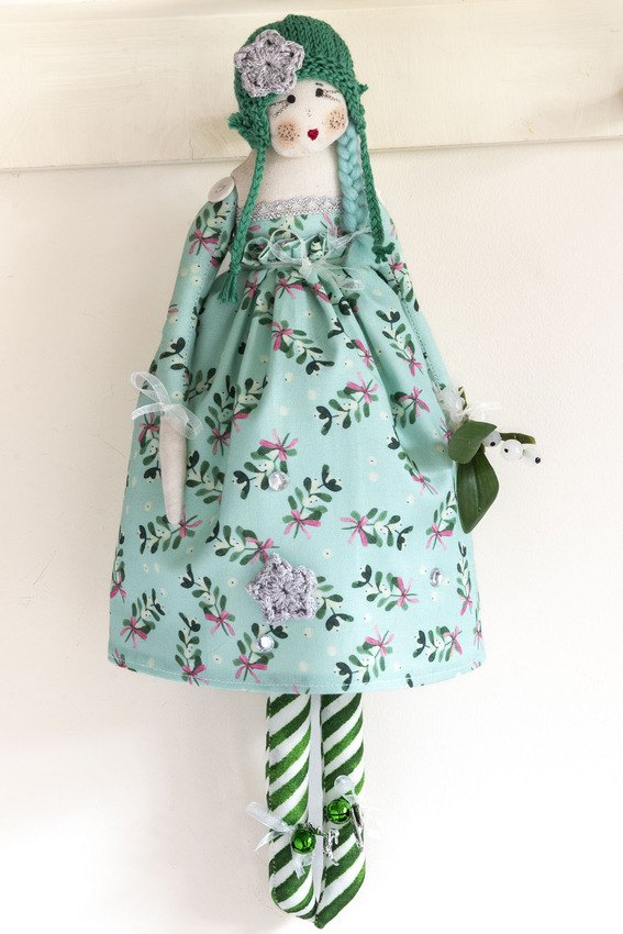 Evie in her beautiful mint mistletoe print dress with matching sleeves, striped stockings, Christmas green hand knitted hat and silver lace edging and as always not to forget glitter lipstick and eyelashes xx