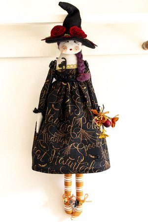 Our Witches this year are dressed in pink and orange, with beautiful Harris Tweed hats, Vintage lace wraps and sparkle cardigans, some with lace. A special card and tin black cat xx
