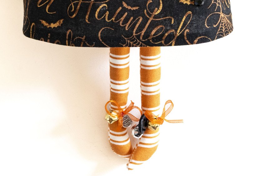 Celeste in her Halloween script print dress, pointy hat and gold lace edging with striped stockings and as always not to forget glitter lipstick and eyelashes xx