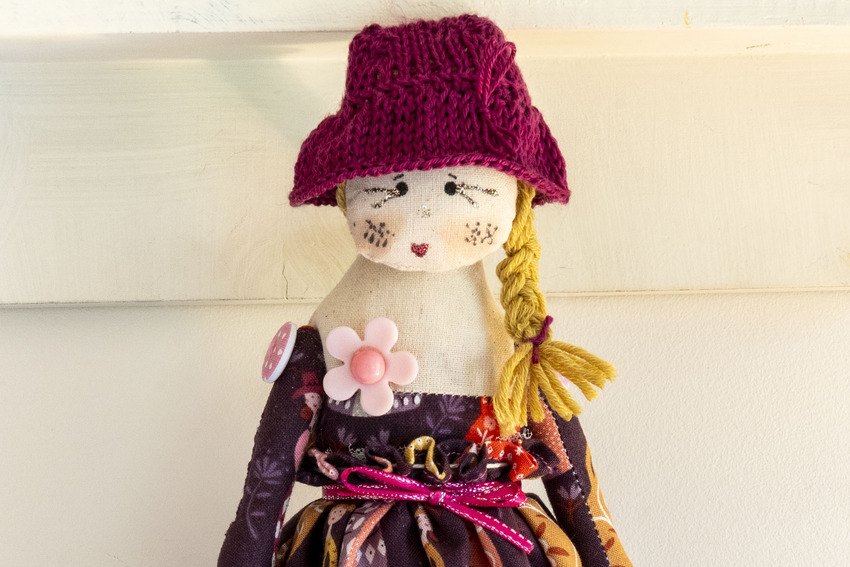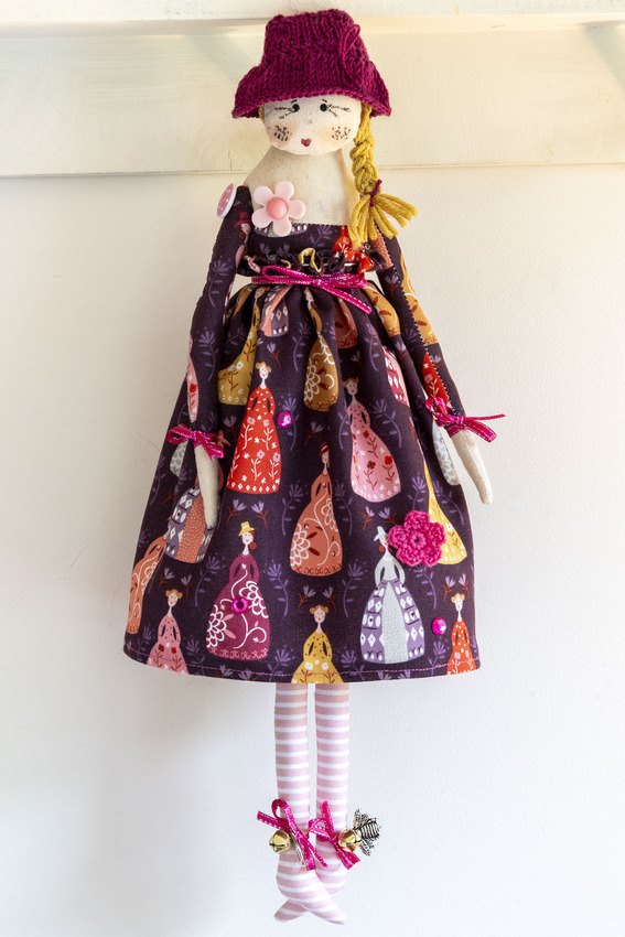 Grace in her beautiful burgundy 19th century ladies print dress with hand knitted burgundy sun hat, striped pink stockings, flower brooch and as always not to forget glitter lipstick and eyelashes xx,