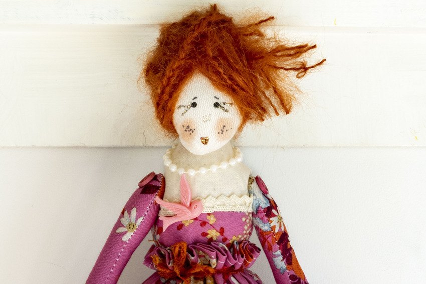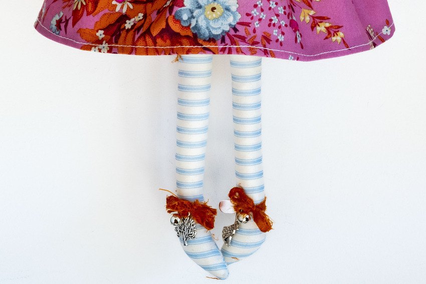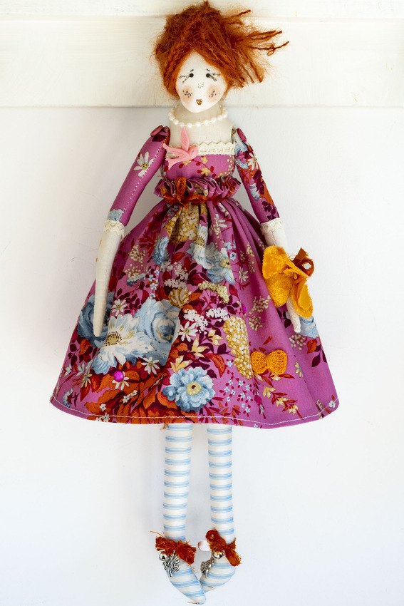 Miss Honeysuckle in her beautiful pink wild flowers patterned dress with elbow length sleeves and lace, candy striped pale blue stockings and a special pink bird and not to forget glitter lipstick and eyelashes xx