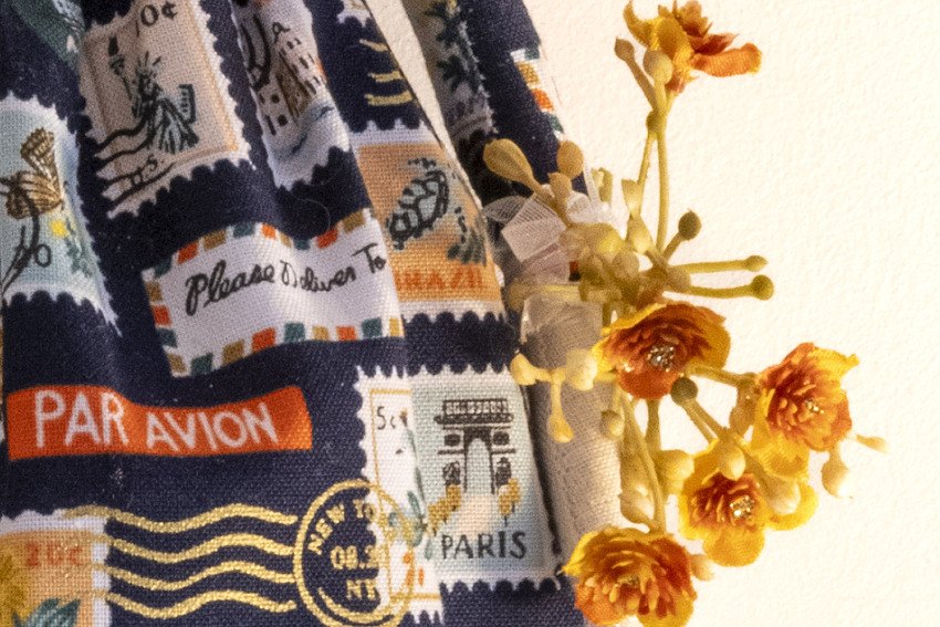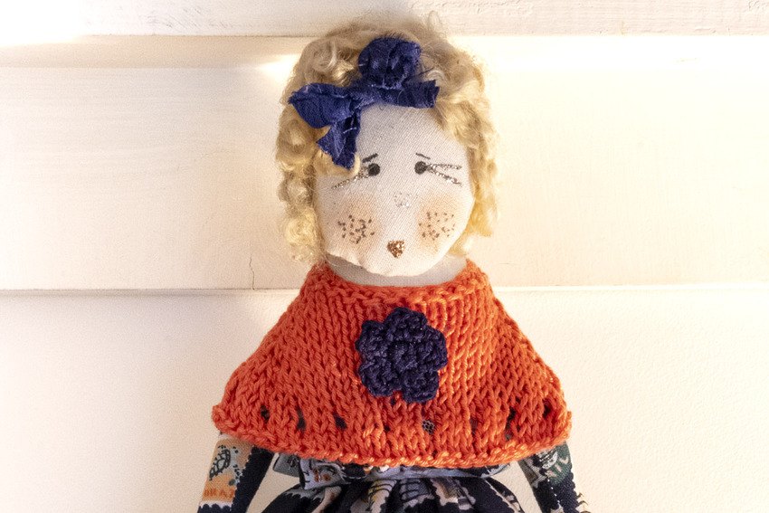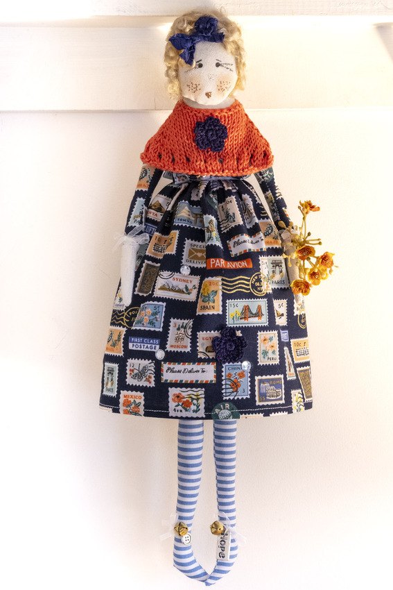 Norma here in her beautifully colourful navy blue stamp print dress with gold and cosy hand knitted wrap, striped stockings and crochet flowers and as always not to forget glitter lipstick and eyelashes xx