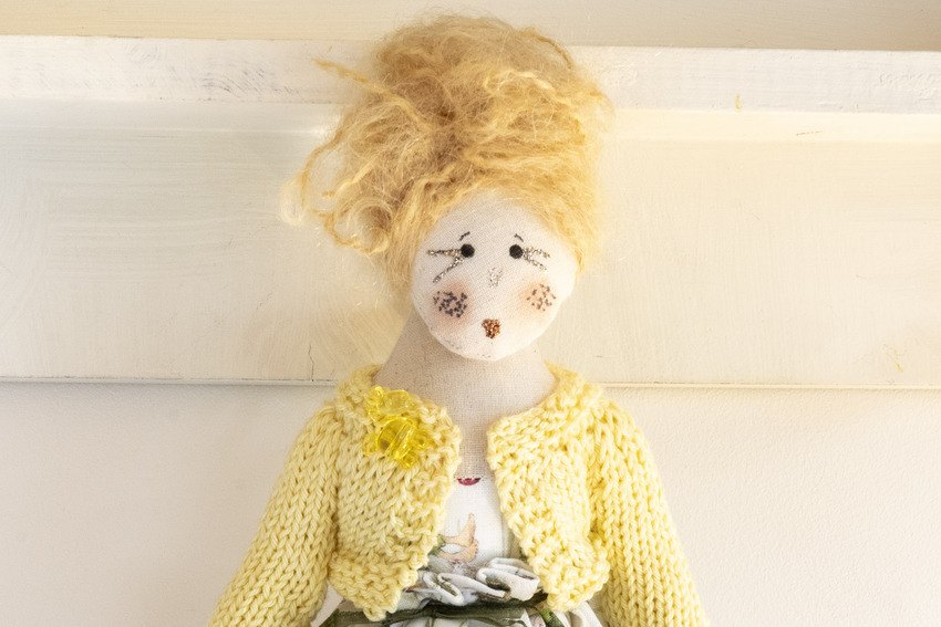 Sally in her Woodland Tales fabric print dress, with hand knitted cardigan and very special brooch, and as always not to forget glitter lipstick and eyelashes xx